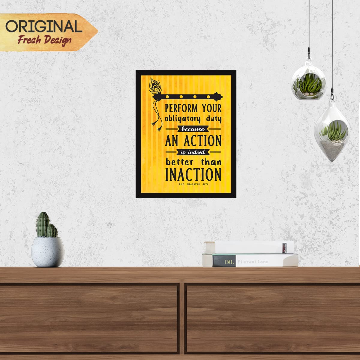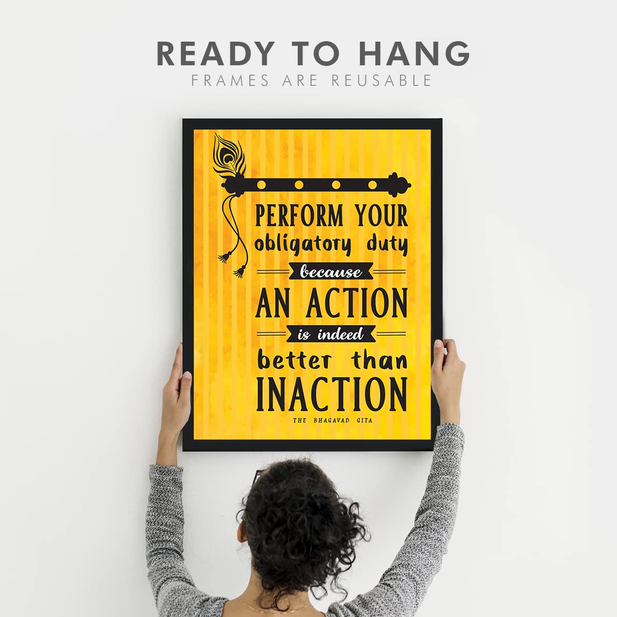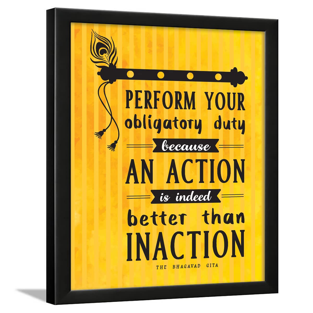 - 【 READY TO HANG 】This Krishna Quotes Wall Frames are easy to use and ready to hang. Smile! No need to assemble it. Perform your obligatory duty because an action is indeed better than inaction
