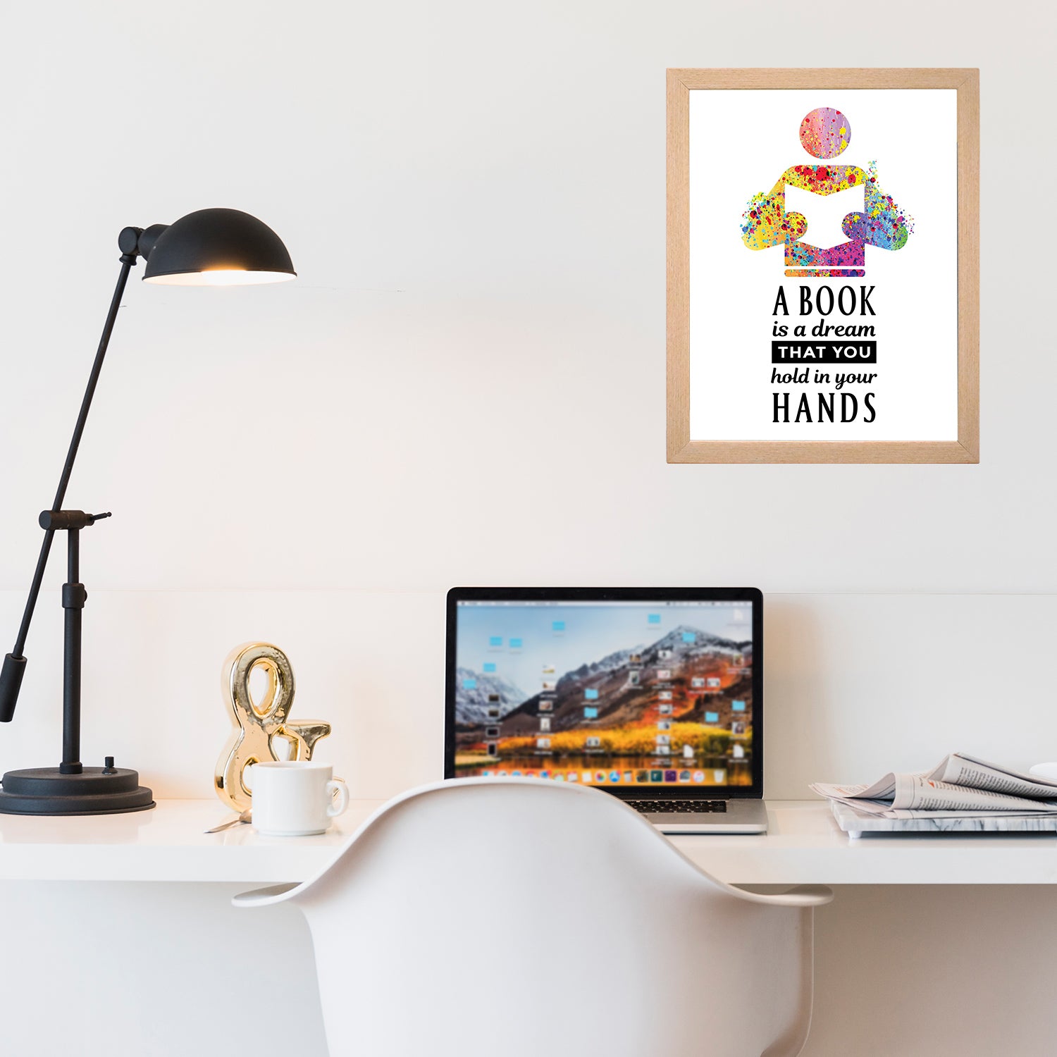 READY TO HANG -These Book Reading quotes framed posters are easy to use and ready to hang. Smile! No need to assemble it. A book is a dream that you hold in your hands
