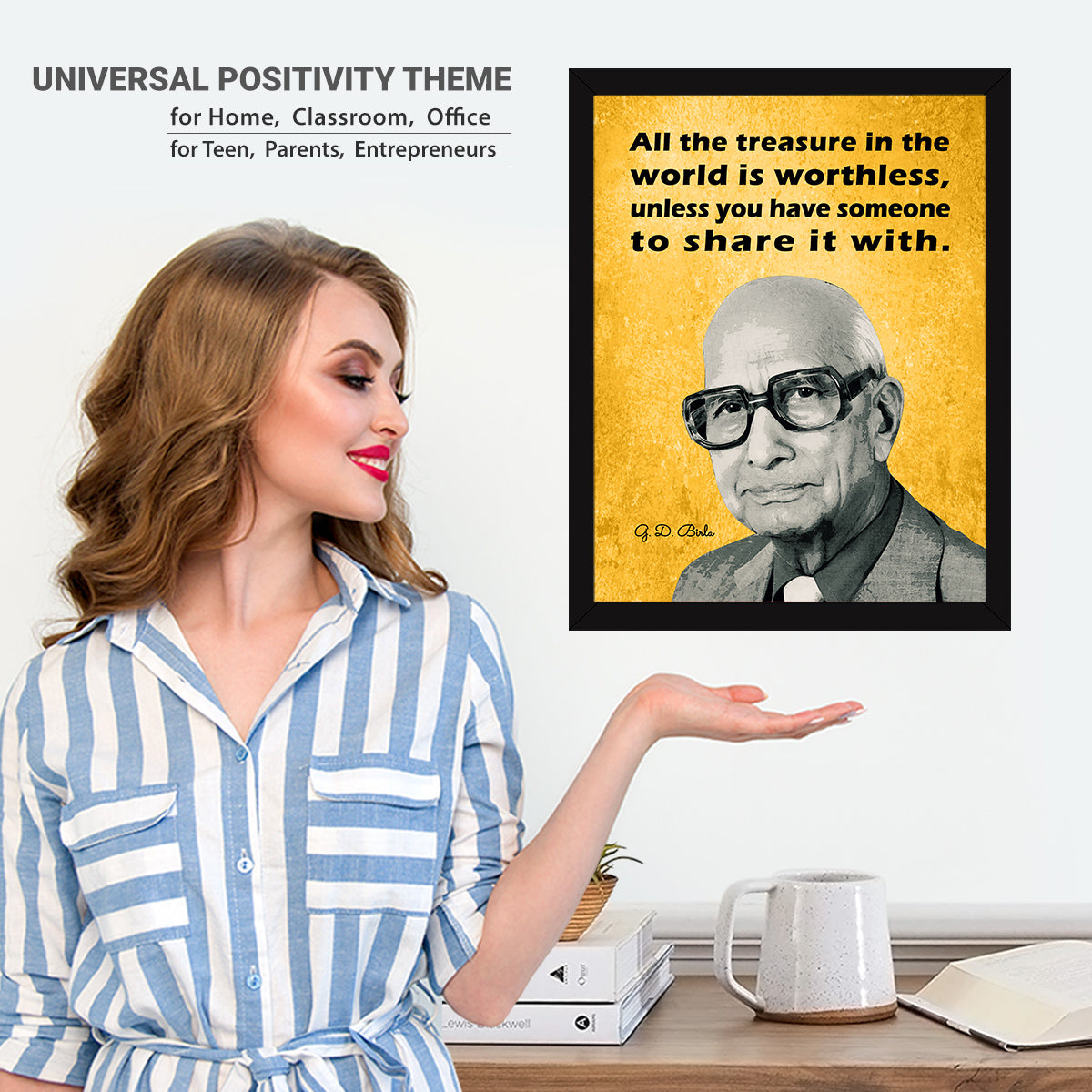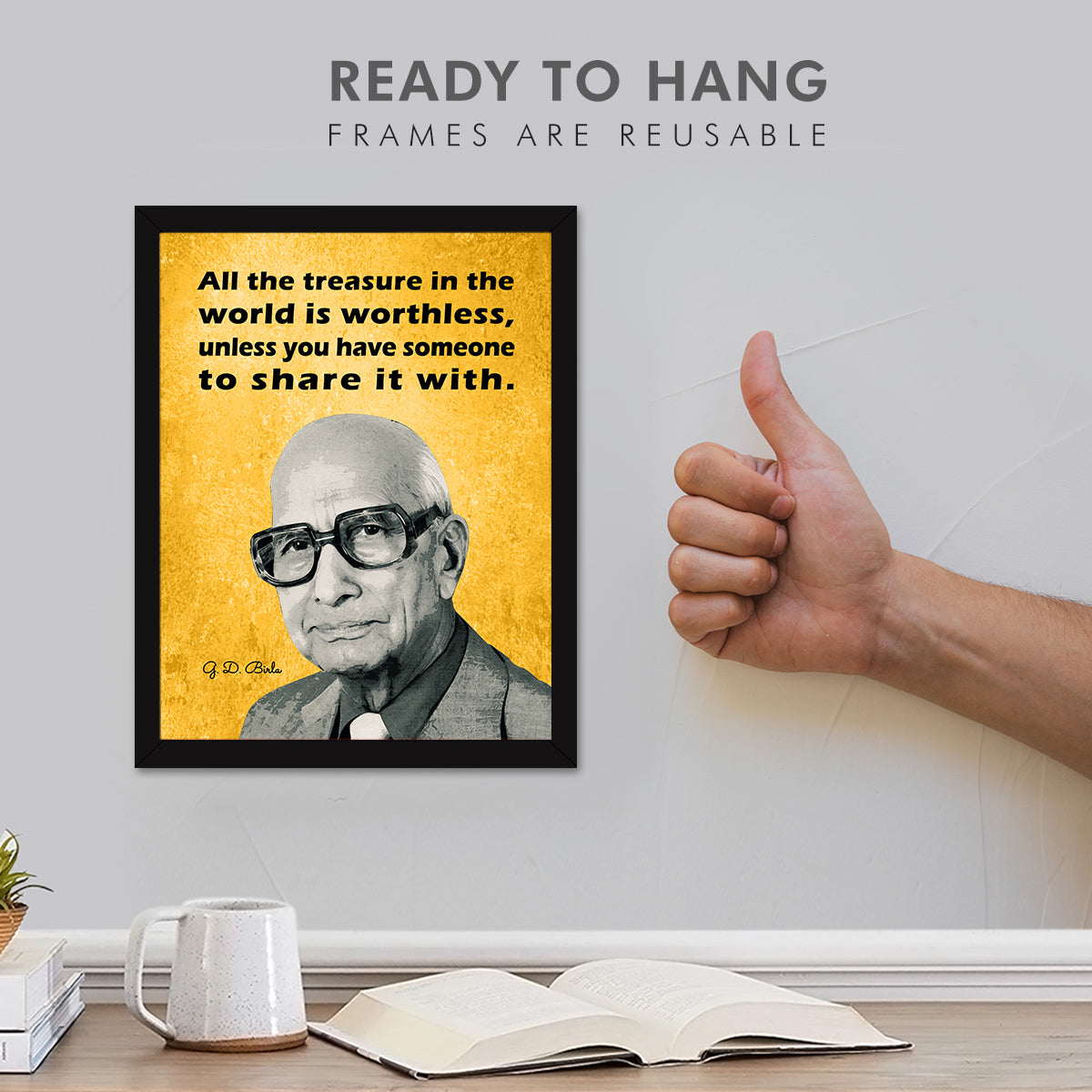 - 【READY TO HANG & REUSABLE 】 - These G. D. Birla Indian businessman Wall decoration items are easy to use and ready to hang. All the treasure in the world is worthless, unless you have someone to share it with.