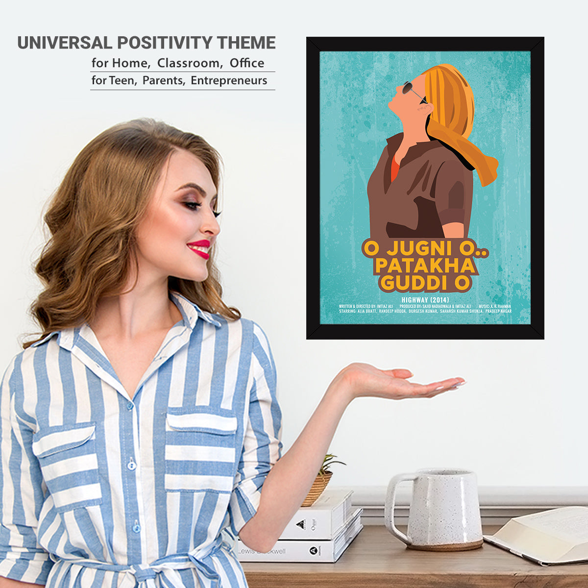 - 【CREATIVE & MOTIVATIONAL FRAMED POSTERS】 Our Designers work on 4K Images, and 300 DPI (Resolution) vector graphics, and use the latest Print technology to deliver you the best vivid, sharp Artwork. Movies are a great source of entertainment, and everyone looks forward to seeing exciting film posters. So let your wall speak and entertain with this Bollywood Song Wall Hanging Quotes.
