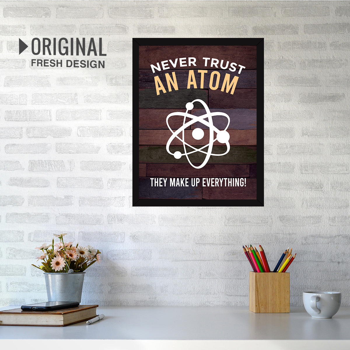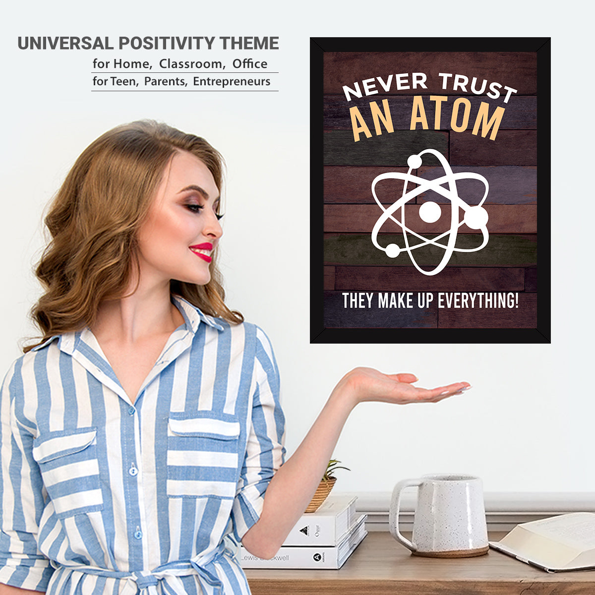 【READY TO HANG】: Our Inspirational Quotes Frame is easy to use and ready to hang. Smile! No need to assemble it. NEVER TRUST AN ATOM THEY MAKE UP EVERYTHING!