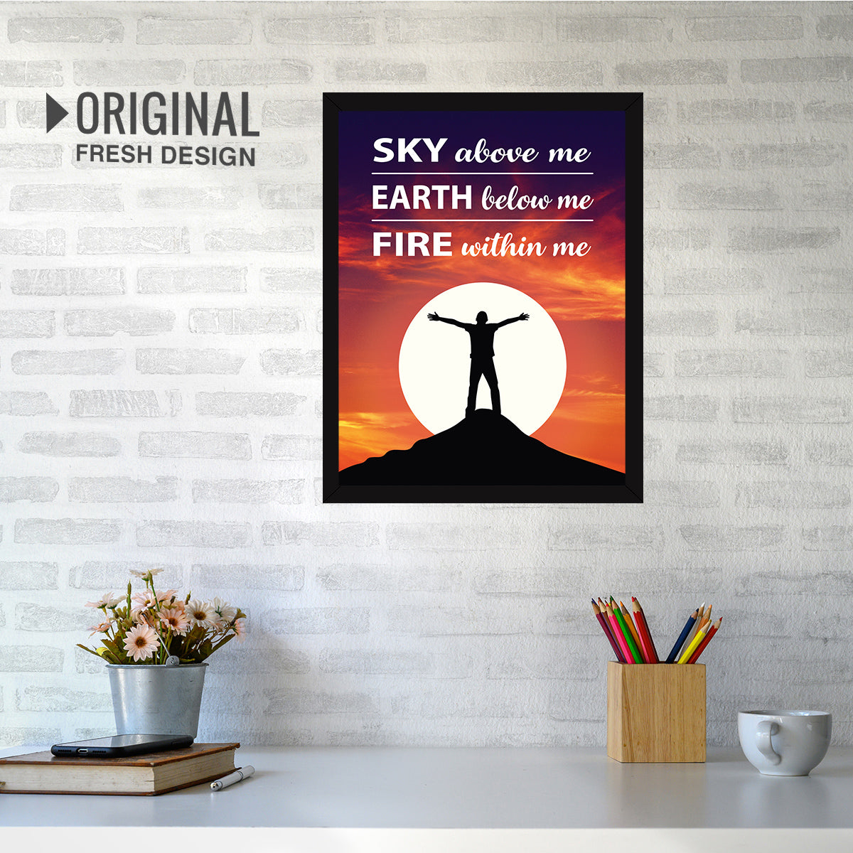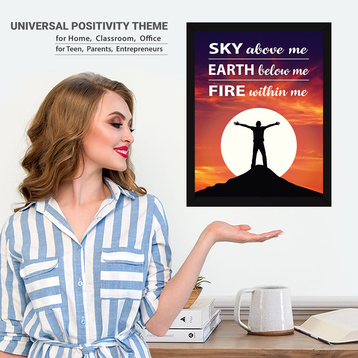 【READY TO HANG】: Inspirational Quotes Frame is easy to use and ready to hang. Smile! No need to assemble it. SKY above me EARTH below me FIRE within me