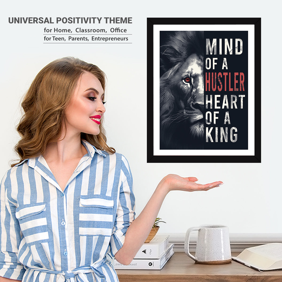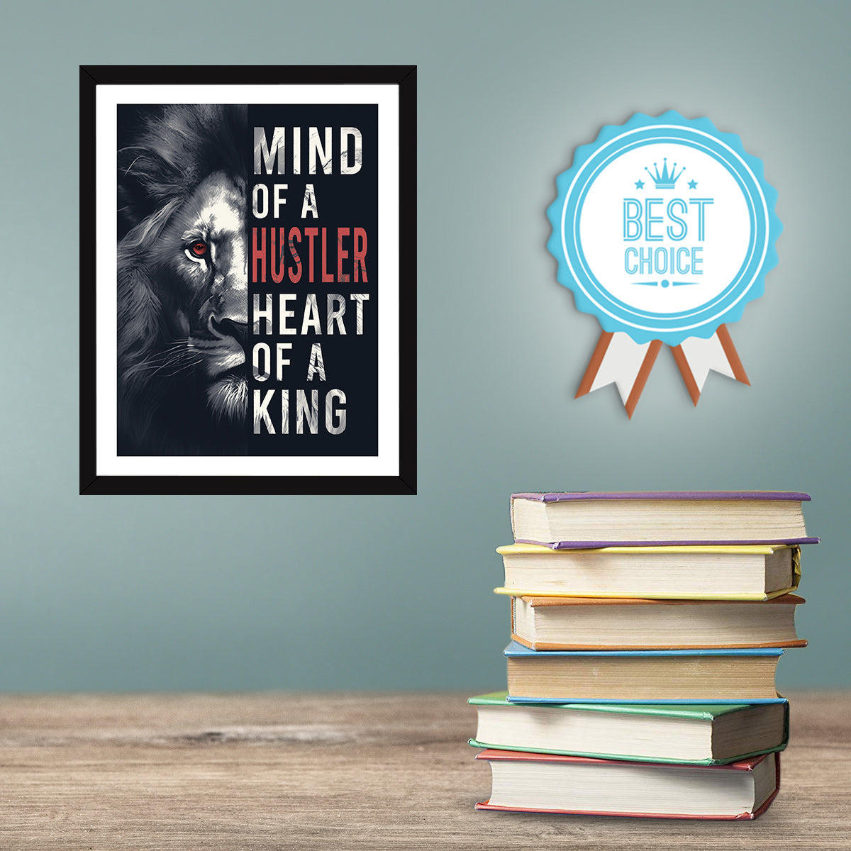 【UNIQUE QUOTES ART】: Discover wide range of MIND OF A HUSTLER HEART OF A KING Quotes Wall Frame for your Home, School, Study Room, College, Institute, Office, Shopping Mall, Student, and Entrepreneur.