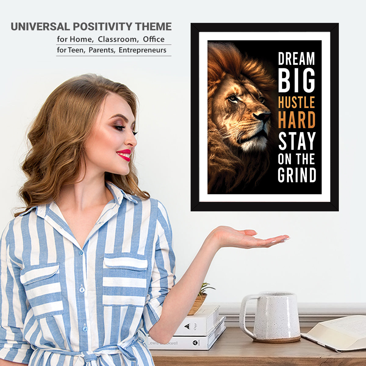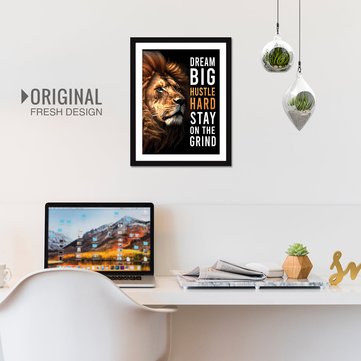 【READY TO HANG】: Inspirational lion Quotes Frame is easy to use and ready to hang. Smile! No need to assemble it. DREAM BIG HUSTLE HARD STAY ON THE GRIND