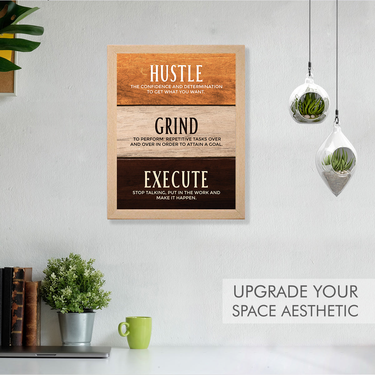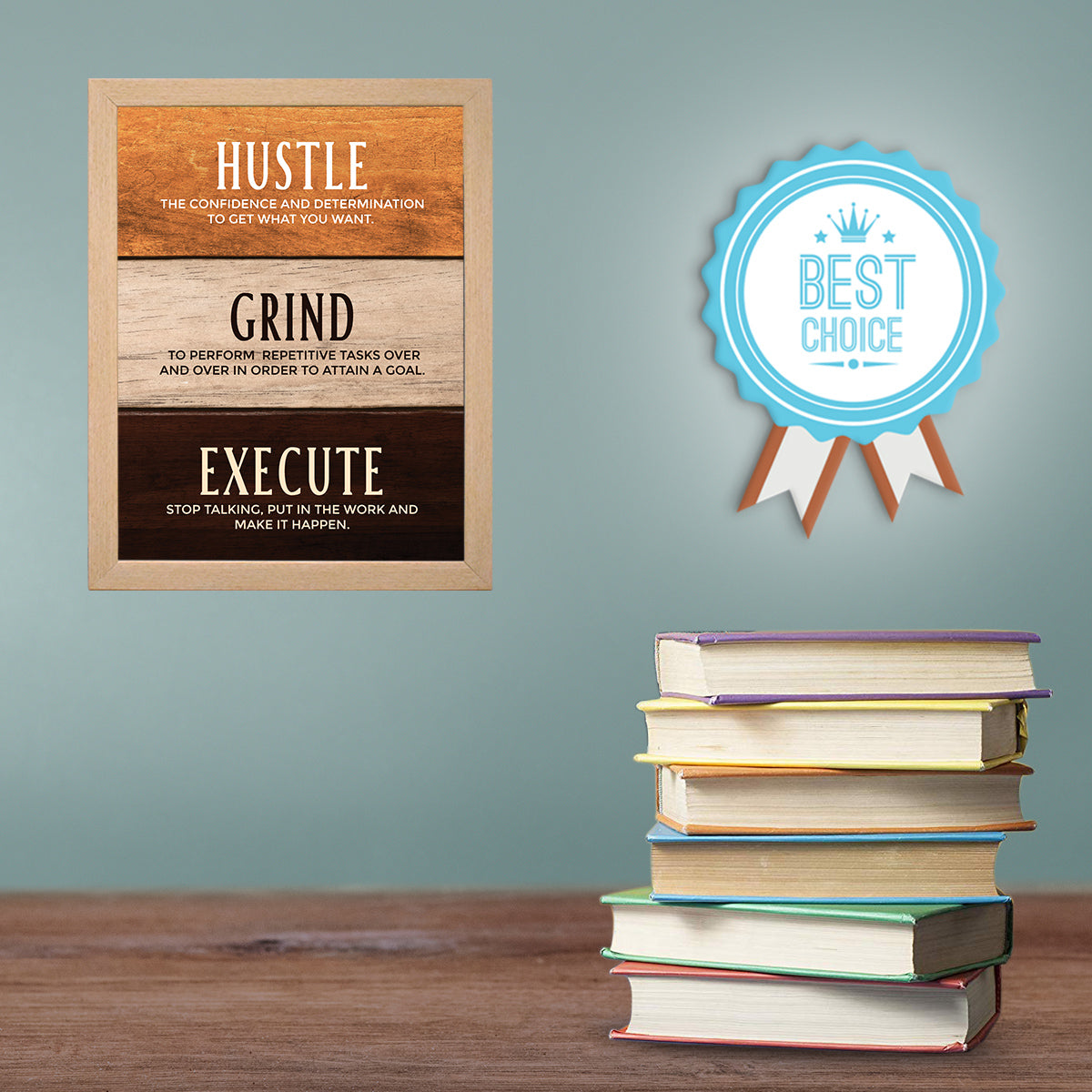 【UNIQUE QUOTES ART】: Discover wide range of HUSTLE THE CONFIDENCE AND DETERMINATION TO GET WHAT YOU WANT. GRIND TO PERFORM REPETITIVE TASKS OVER AND OVER IN ORDER TO ATTAIN A GOAL. EXECUTE STOP TALKING, PUT IN THE WORK AND MAKE IT HAPPEN. Wall Frame for your Home, School, Study Room, College, Institute, Office, Shopping Mall, Student, and Entrepreneur.