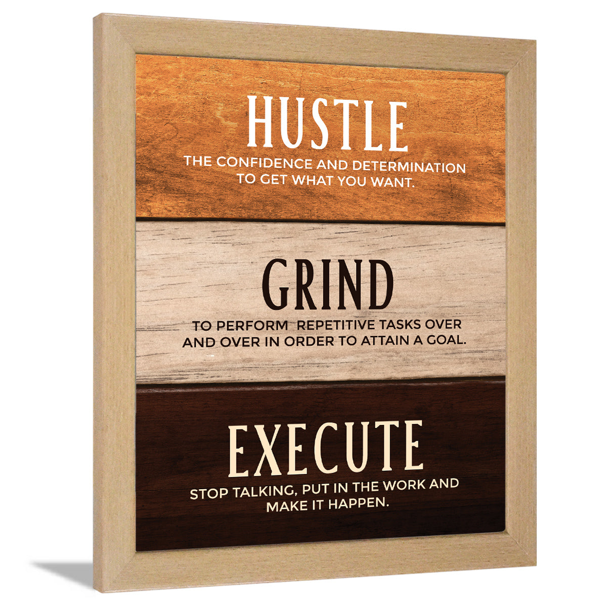 【READY TO HANG】: Our Inspirational Quotes Frame is easy to use and ready to hang. Smile! No need to assemble it. HUSTLE THE CONFIDENCE AND DETERMINATION TO GET WHAT YOU WANT. GRIND TO PERFORM REPETITIVE TASKS OVER AND OVER IN ORDER TO ATTAIN A GOAL. EXECUTE STOP TALKING, PUT IN THE WORK AND MAKE IT HAPPEN.