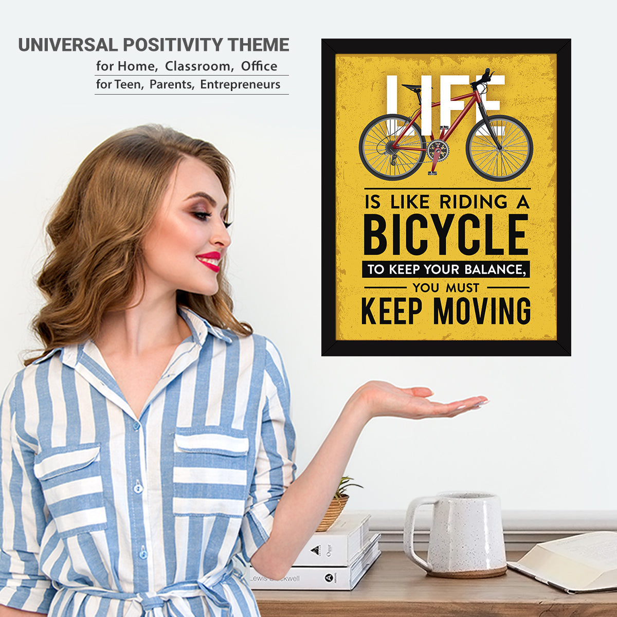 • 【UNIQUE QUOTES ART】: Discover wide range of Life Is Like Riding A Bicycle To Keep Your Balance You Must Keep Moving Quotes Wall Frame for your Home, School, Study Room, College, Institute, Office, Shopping Mall, Student, and Entrepreneur.