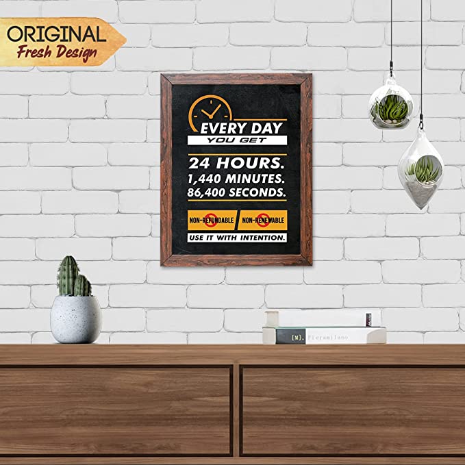 【READY TO HANG】: Our Inspirational Time Quotes Frame is easy to use and ready to hang. Smile! No need to assemble it. - Every Day We Get24 Hours1,440 Minutes86,400 Seconds non-Refundable non Renewable Use It With Intention