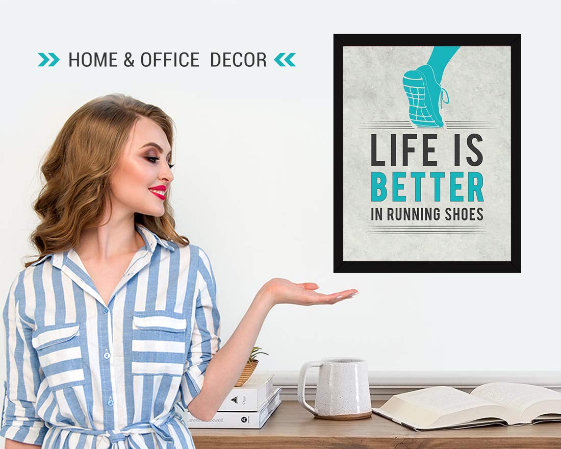 【READY TO HANG】: Our Inspirational Life Quotes Frame is easy to use and ready to hang. Smile! No need to assemble it. Life Is Better In Running Shoes.